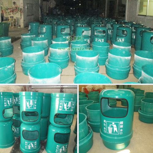 這次采購的A12玻璃鋼果皮箱型號,我們的標準按照客戶的要求來定制生產。A12玻璃鋼果皮箱規格為:550*900.桶的顏色為翠綠。按照雙方約定的玻璃鋼垃圾桶標準,下單生產前,先預付部分定金。工廠接到通知才做樣品,樣品做好發給顧客參考確認,再進行做批量生產。垃圾桶頭口貼膠條,表面光滑,無裂痕,紋邊角加層。采用玻璃鋼不飽和聚酯樹脂和玻璃鋼纖維復合而成的材質,玻璃鋼垃圾桶邊角的厚度4mm,單邊帶有煙缸。桶中間加絲印,人物投垃圾狀態,兩邊有靚麗水口,美化水口等標語。惠州城區街道玻璃鋼圾桶,簡潔、美觀,色澤鮮艷,經久耐用,對人體無害,不褪色油漆不脫落。