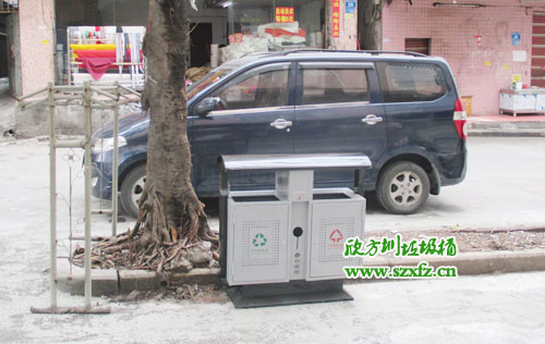 廣州市新塘鎮(zhèn)街道辦采購F49戶外分類環(huán)保垃圾桶,按照15天交貨日期,如期完工,送貨上門。此款F49戶外分類環(huán)保垃圾桶規(guī)格為:1000*350*1000.鋼制垃圾桶屋檐桶頭設(shè)計(jì),防止雨水傾入內(nèi)桶。鋼制垃圾桶中間圓形煙頭投口,有害物投口,充分利用空間。桶兩邊都絲印有,標(biāo)志,字體,不可回收字樣,采用紅顏色。 標(biāo)志,字體,可回收字樣,采用綠顏色。巧妙的設(shè)計(jì),結(jié)合城市人性化,更好服務(wù)城市居民。