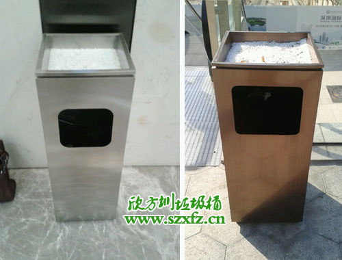 此次湖南張家界訂購的方形不銹鋼垃圾桶,是C60改造而成,區別不同與其他款式,在于頂部加有特定制的方形煙灰桶,里面放著大理石碎片。采用高檔不銹鋼材料,內外表面光潔,減少垃圾殘留,易于清潔;配置鍍鋅板內桶,便于垃圾清倒.金屬亮澤,高雅美觀。