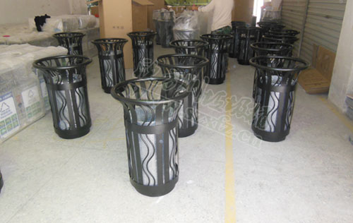 客戶訂購的這款F01花籃垃圾桶,名稱也叫鋼制垃圾桶。花籃式戶外垃圾桶頂圈圓管用35mm,厚1.5mm,扁鋼用厚度3.0mm,寬30mmm,花籃式戶外垃圾桶桶身上下圈厚度3.0mm*高65mm.花籃式戶外垃圾桶內(nèi)桶分別用塑料桶或者玻璃鋼兩種材質(zhì)。外觀呈花籃,整個形狀有點像打籃球的投籃口。學校的女同學,投遞垃圾時可以練習投籃,不在怕投不上高高的籃球架上去。環(huán)保與娛樂相結合,為校園添加不少樂趣。