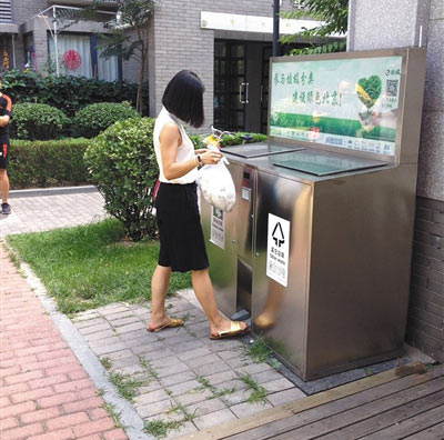今年初,北京市開始推廣智能垃圾分類回收箱,能自動掃描二維碼并開啟相應(yīng)垃圾箱,如廚余或者其他垃圾。