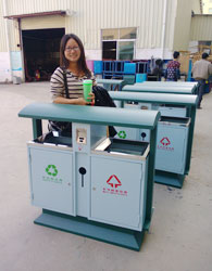 北京傳媒公司是我司的新顧客,初次合作都這么信賴,是我們欣方圳人員的驕傲。這次采購的這款F206鍍鋅烤漆垃圾桶,與以前的垃圾桶有點獨特。記得,此款鋼制垃圾桶為華僑城的歡樂海岸,深圳南山商業文化中心大量供應過。他們在規格上面沒有太多變化,顏色上面有鮮明的對比。此款鋼制垃圾桶采用外鍍鋅鋼材質,外框鍍鋅鋼厚度為2mm;內膽鍍鋅鐵皮厚0.5mm;外桶L550*W550*540*H1030MM;新做滴鍍鋅烤漆垃圾桶,有雙面投遞,上面絲印工藝的印花保持3到4年。投遞口兩個圓圈,另外一個是由搖蓋投遞。白色絲印有可回收物標志。此圖片上沒有標準,北京傳媒需要的廣告語,其他鋼制垃圾桶都有標注。提醒大伙,不要亂扔垃圾。保護環境,人人有責,我們的家園更有愛,更環保。
