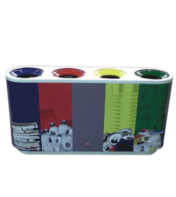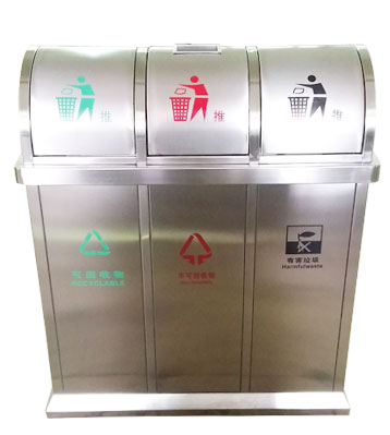 深圳新標準城中村街道社區不銹鋼五分類垃圾桶由有害垃圾、玻璃、金塑紙(為金屬、塑料、紙張的簡稱)、廚余垃圾、其他垃圾這5分類不銹鋼垃圾桶組合而成。其中金塑紙、其他垃圾日常產生量較大,所以分類收集容器也