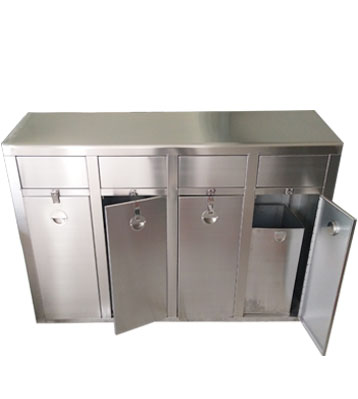 深圳新標(biāo)準(zhǔn)城中村街道社區(qū)不銹鋼五分類垃圾桶由有害垃圾、玻璃、金塑紙(為金屬、塑料、紙張的簡(jiǎn)稱)、廚余垃圾、其他垃圾這5分類不銹鋼垃圾桶組合而成。其中金塑紙、其他垃圾日常產(chǎn)生量較大,所以分類收集容器也