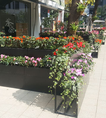 在當代城市綠化過程中,我們常常用各種草本花卉打造成各式各樣的花槽,護欄,塑木花箱等等,他們作為一種有生命的花卉群體裝飾圖案,被廣泛應用于景觀園林,公園戶外,城市各個街道,商業街等等。為持續推