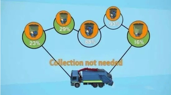 Enevo ONe作為一個基于超聲波傳感器的廢物回收系統(tǒng)。傳感器將收集到的垃圾箱和垃圾回收地的傳感數(shù)據(jù)通過低功耗的LoRa網(wǎng)絡傳輸?shù)綌?shù)千米外的LoRa基站,再傳送到服務器。通過分析這些數(shù)據(jù),垃圾管理者能更直觀的了解轄區(qū)內各個垃圾桶的填充狀態(tài),并為清潔的車輛規(guī)劃最佳的回收路線,從而節(jié)省環(huán)衛(wèi)機構的運營成本。