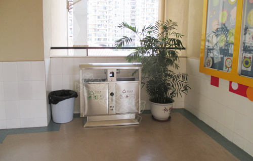 外國(guó)語(yǔ)實(shí)驗(yàn)小學(xué)分類垃圾桶遍布各個(gè)角落