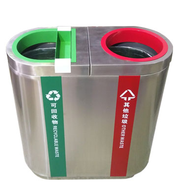深圳新標準城中村街道社區不銹鋼五分類垃圾桶由有害垃圾、玻璃、金塑紙(為金屬、塑料、紙張的簡稱)、廚余垃圾、其他垃圾這5分類不銹鋼垃圾桶組合而成。其中金塑紙、其他垃圾日常產生量較大,所以分類收集容器也