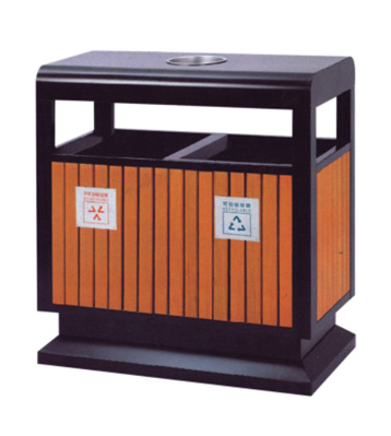鋼木垃圾桶 鋼木選用防腐木、進口山樟木或塑木,經除蟲、防腐,烘干處理后加工成型。桶身框架冷軋鋼經酸洗磷化制作