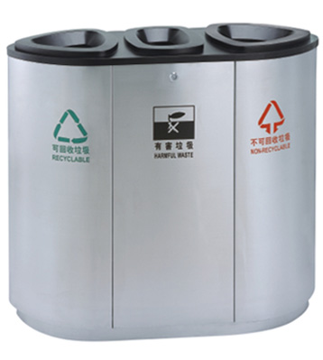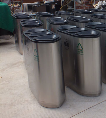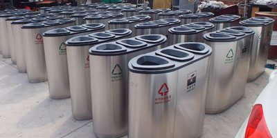 使用客戶:廣西南寧商場物業不銹鋼三分類垃圾桶 發布時間:2018-08-08