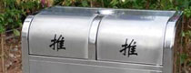不銹鋼垃圾桶是一種存放垃圾的容器,使用不銹鋼制作而成。因為不銹鋼耐空氣、蒸汽、水等弱腐蝕介質和酸、堿、鹽等化學浸蝕性介質腐蝕,所以不銹鋼垃圾桶耐用性高。全身不銹鋼制作的垃圾桶還具有防火功能,堅固耐用。 材質:不銹鋼常按組織狀態分為:馬氏體鋼、鐵素體鋼、奧氏體鋼、奧氏體-鐵素體(雙相)不銹鋼及沉淀硬化不銹鋼等。另外,可按成分分為:鉻不銹鋼、鉻鎳不銹鋼和鉻錳氮不銹鋼等。