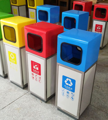 • 使用范圍:三分類鐵板噴塑垃圾桶表面光滑、亮麗,是電梯口、寫字樓、學校、物業、賓館、酒店、機場、汽車站等擺放的首選。