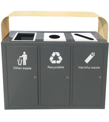 • 產品名稱:三分類仿木紋鋼制烤漆垃圾桶