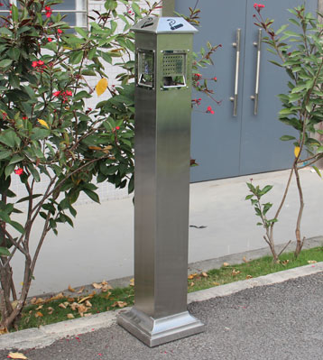 戶外公共場所不銹鋼滅煙柱采用優質不銹鋼材質制作,方形底座配重不傾倒,長期擺放戶外高檔不生銹,用于吸煙人群滅煙和煙蒂收集使用,防范火災隱患。