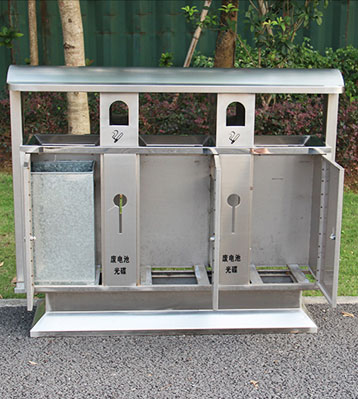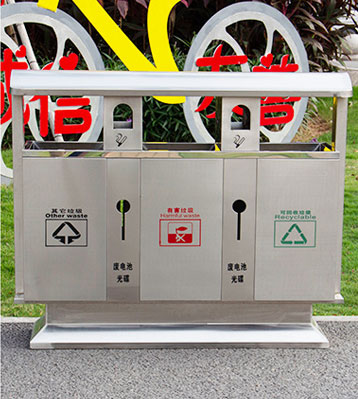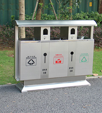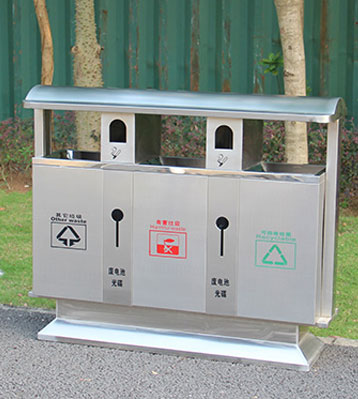 • 使用范圍:市政戶外三分類不銹鋼垃圾桶表面光滑、亮麗,是電梯口、寫字樓、學校、物業、賓館、酒店、機場、汽車站等擺放的首選。