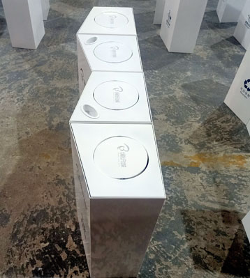 方形多邊造型突顯果皮箱個性時尚,邊角打磨光滑無利口清理不傷手,由4個單桶組合擺放成4分類果皮箱,上部桶頭搖擺蓋在垃圾投放后可自動復(fù)位,可阻止果皮箱內(nèi)垃圾異味擴散清潔環(huán)保,輕松取出桶頭收運瓜果紙屑!