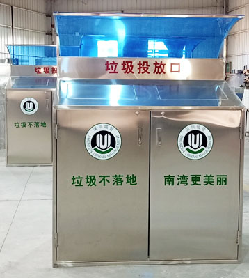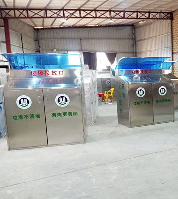 欣方圳大容量帶雨棚不銹鋼分類垃圾桶工廠批量生產(chǎn)圖