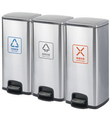 30L室內不銹鋼腳踏垃圾桶采用優質430不銹鋼材質制作,室內防銹升級,表面防指紋處理,現貨規格30L、60L、90L、120L四種規格,可定制垃圾分類標識。