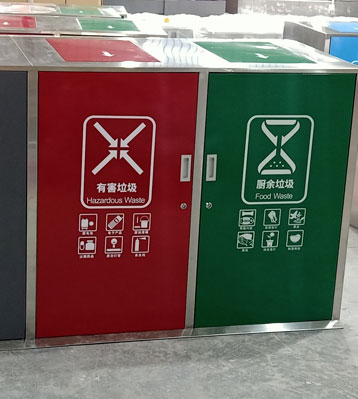 欣方圳社區戶外大容量四分類垃圾桶工廠批量生產圖