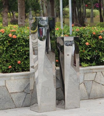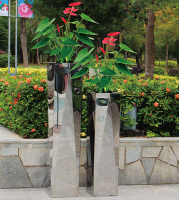 欣方圳不銹鋼落地式切面花瓶工廠產品批量生產圖