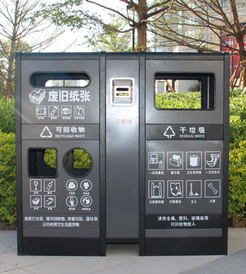 東莞樓盤在戶外果皮箱的選擇上,根據需求設計找到欣方圳廠家生產定制,主要是方便社區居民扔一些小垃圾,所以外觀款式上每個分類收集容器不是很...