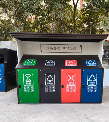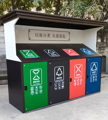 F139戶外鋼板四分類垃圾桶
