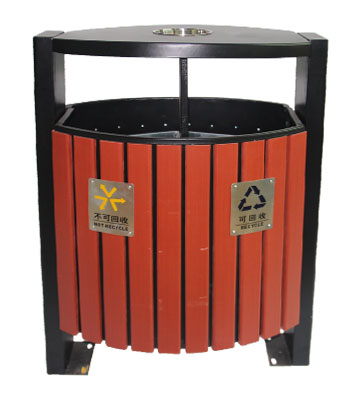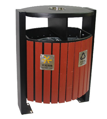 欣方圳環保鋼木分類垃圾桶桶身細節圖