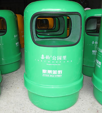 玻璃鋼垃圾桶桶身和內膽部分,采用高級玻璃鋼材質一次成型,經過打磨、除塵 、噴漆等一系列后期工藝然后出成品。