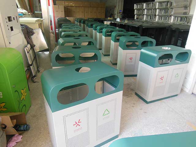 F139戶外鋼板四分類垃圾桶